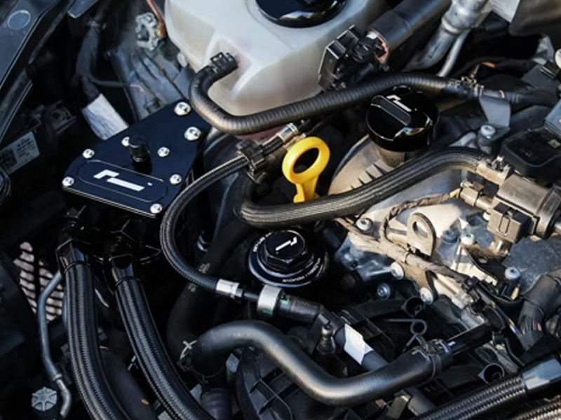 Este Oil Catch Can Racingline ha sido desarrollado específicamente para los motores 2.0 TFSI EA888 Gen4 de la plataforma MQB EVO, sustituyendo directamente la válvula PCV original para mejorar la gestión de vapores de aceite.
