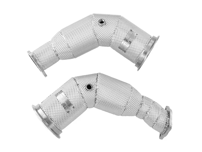 Estas downpipes descatalizadas Alpha Competition están desarrolladas para los motores 2.9 TFSI biturbo de los Audi RS4 B9 y RS5 F5. Fabricadas en acero inoxidable T304 de máxima calidad con soldaduras TIG realizadas a mano, utilizan tuberías de 4,5” (114,3 mm) que reducen progresivamente a 3” (76 mm), sustituyendo los catalizadores originales sin necesidad de modificaciones. Su diseño de alto flujo permite mejorar de forma notable el rendimiento, ofreciendo una ganancia de hasta +34cv en stage 1.
