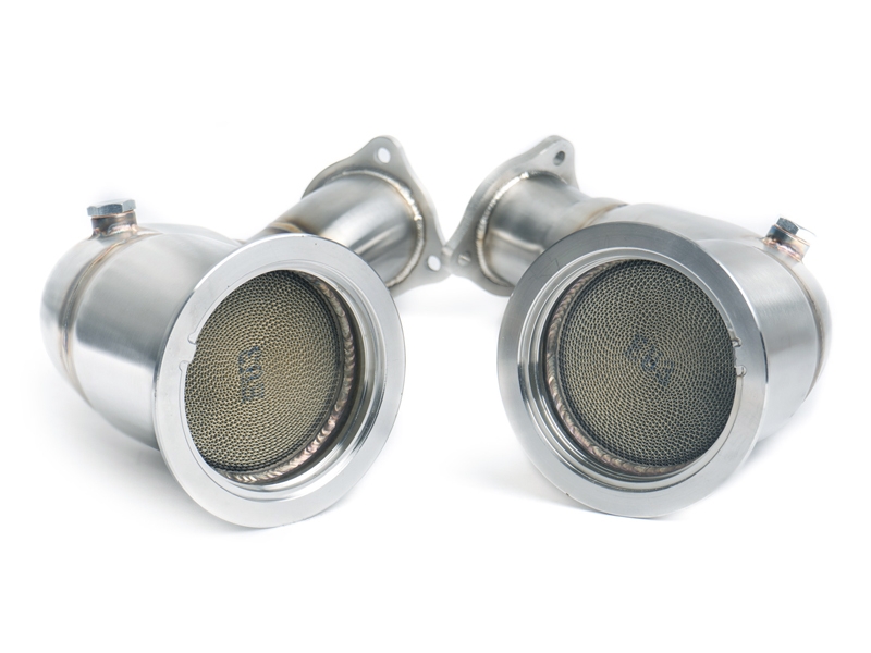 Las downpipes catalizadas de alto flujo CTS Turbo para Audi RS4 B9 y RS5 F5 han sido desarrolladas para mejorar el rendimiento del sistema de escape sin comprometer la calidad de construcción. Fabricadas íntegramente en acero inoxidable T304 con soldaduras TIG de alta precisión, estas downpipes ofrecen un flujo de gases optimizado, una respuesta más rápida del motor y un sonido claramente más deportivo.