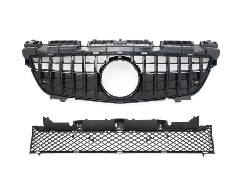 Parrilla delantera de diseño Panamericana GTR compatible con Mercedes-Benz SLK de la generación R172. Fabricada en plástico ABS de alta resistencia, está diseñada para sustituir directamente la parrilla original, aportando un aspecto deportivo y elegante sin necesidad de modificaciones. Acabado en negro brillo completo y con excelente calidad de ajuste.