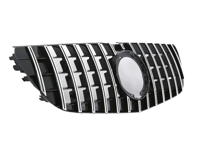 Parrilla delantera con diseño Panamericana GTR compatible con Mercedes-Benz Vito W447 a partir del facelift de 03/2019. Fabricada en plástico ABS de alta resistencia, esta rejilla sustituye directamente la original, ofreciendo un aspecto más deportivo sin necesidad de realizar modificaciones. Acabado en negro con lama vertical cromada y excelente ajuste.