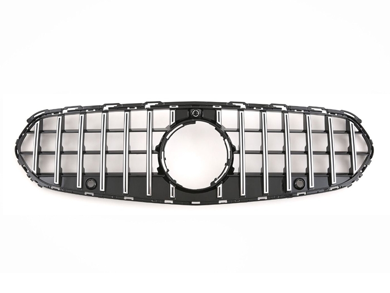 Parrilla delantera estilo Panamericana GT compatible con los modelos Mercedes-Benz Clase C W206 (berlina) y S206 (familiar) con acabado Avantgarde o equipamiento de serie, fabricados a partir de 2021. Fabricada en plástico ABS de alta resistencia, esta parrilla presenta un elegante acabado negro brillo con molduras cromadas verticales, aportando un toque deportivo y exclusivo al frontal del vehículo.