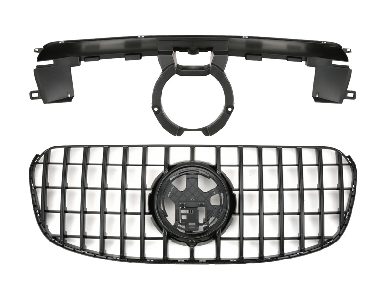 Parrilla delantera estilo Panamericana GT compatible con Mercedes-Benz X167 GLS desde la versión restyling de 11/2023. Proporciona una imagen más deportiva y elegante al frontal del vehículo manteniendo el ajuste original. Fabricada en plástico ABS de alta resistencia, está diseñada para soportar impactos e inclemencias del tiempo, siendo una opción perfecta tanto en estética como en durabilidad.
