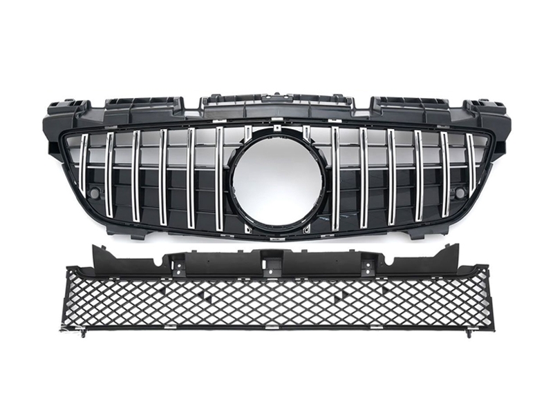 Grelha frontal de design Panamericana GTR compatível com Mercedes-Benz SLK da geração R172. Fabricada em plástico ABS de alta resistência, foi concebida para substituir diretamente a grelha original, conferindo um aspeto desportivo e elegante sem necessidade de modificações. Acabamento em preto brilhante com lamas cromo, com excelente qualidade de ajuste.