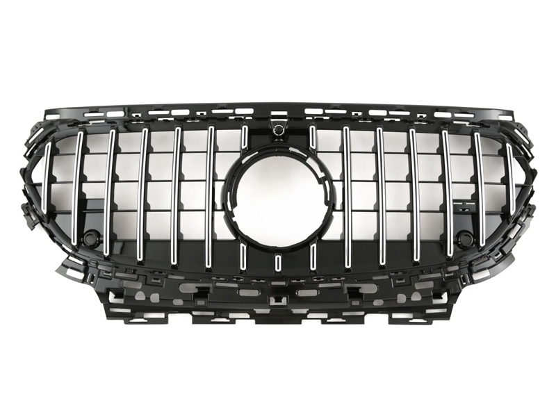 Grelha dianteira estilo Panamericana GT compatível com os modelos Mercedes-Benz Classe E W214 Berlina, S214 Estate e X214 All-Terrain a partir de 05/2023, nas versões AMG-Line e Avantgarde. Oferece um design desportivo e elegante que renova por completo a dianteira do veículo sem necessidade de modificações. Fabricada em plástico ABS de alta qualidade, resistente a impactos e às condições meteorológicas.