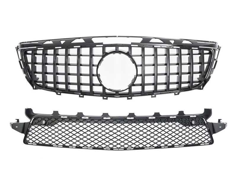 Grelha dianteira com design Panamericana GTR compatível com os modelos Mercedes-Benz CLS Coupé e Shooting Brake da geração W218 pré-facelift. Fabricada em plástico ABS de alta resistência, foi concebida para substituir diretamente a grelha original, conferindo um aspeto desportivo e elegante sem necessidade de modificações. Acabamento totalmente em preto brilhante e excelente qualidade de encaixe.