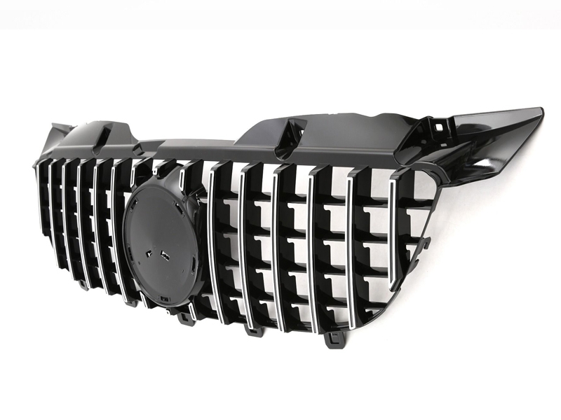 Grelha dianteira estilo Panamericana GTR compatível com a Mercedes-Benz Sprinter W906 fabricada entre 2006 e 08/2013 (pré-facelift). Esta grelha oferece um visual desportivo e elegante, com acabamento em preto brilho e lâminas cromadas verticais. Produzida em plástico ABS de alta qualidade, é resistente a impactos e às intempéries.